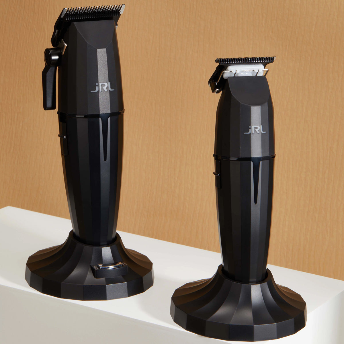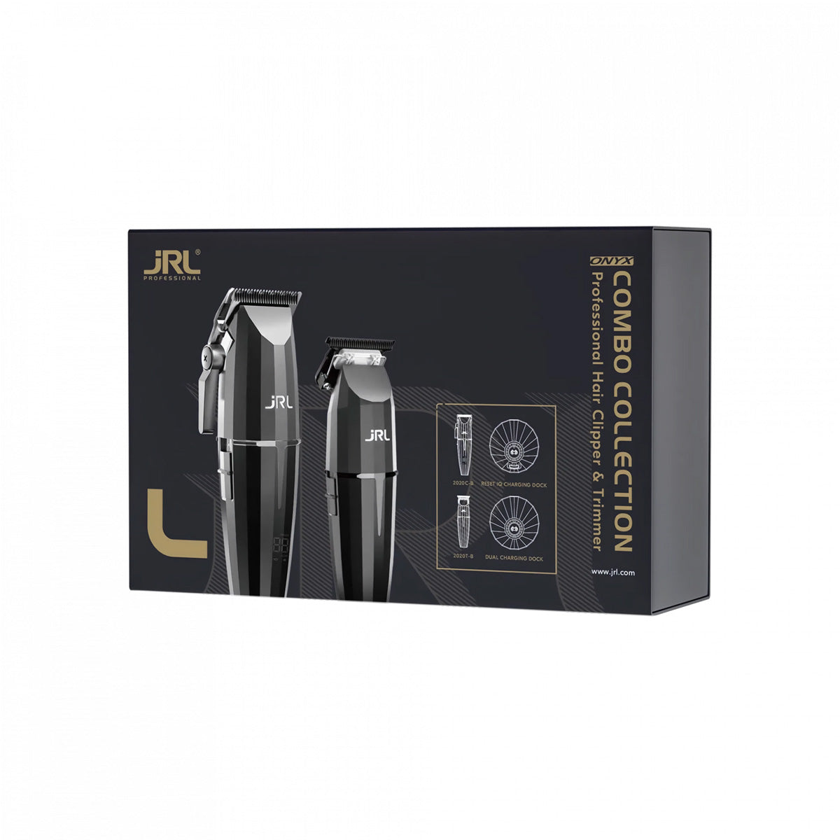 Das JRL Onyx Collection Kombi-Set – leistungsstarker Haarschneider + hochpräziser Trimmer im eleganten Onyx-Design. Professionelle Leistung in einem Komplettset.