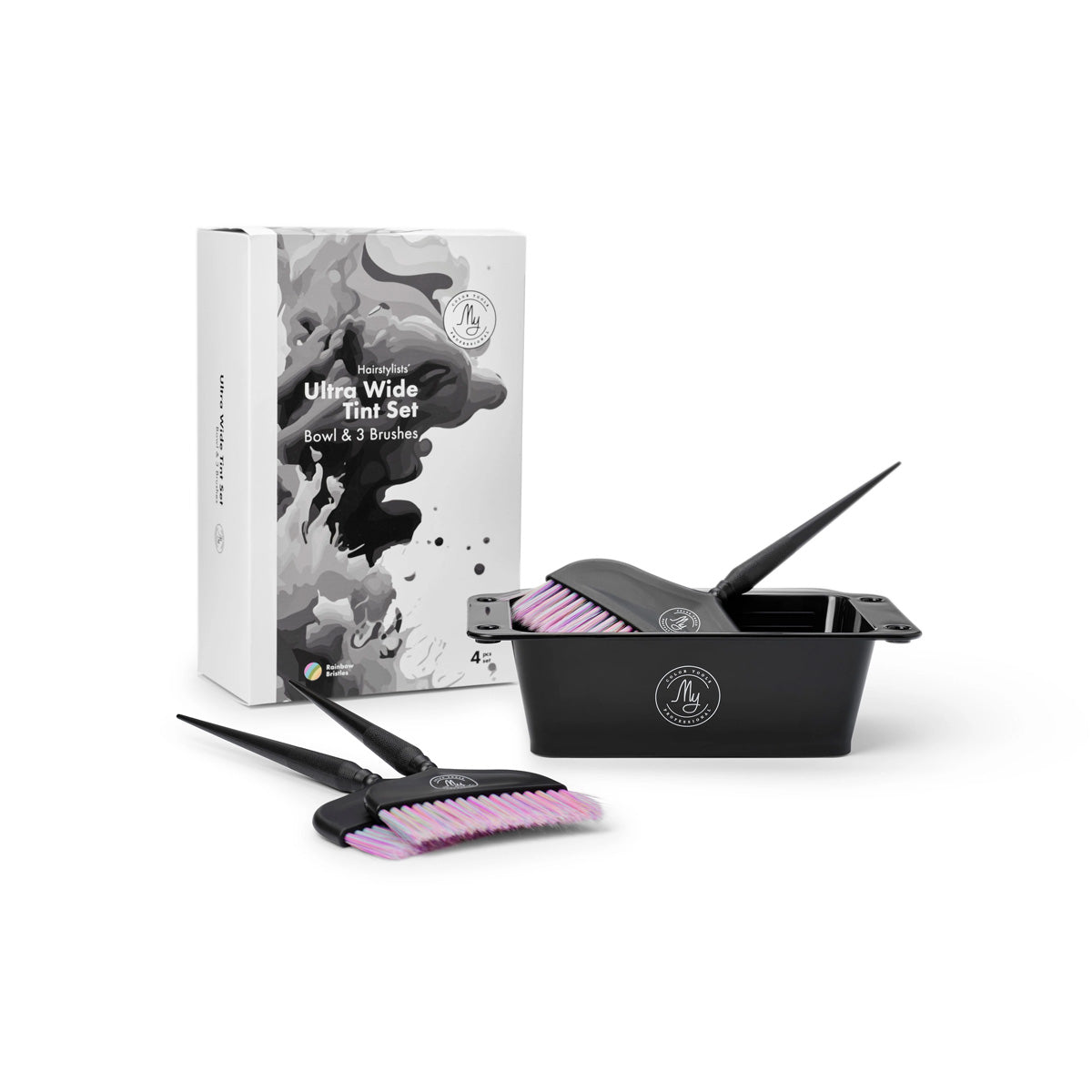 De My Ultra Wide Tint Set is een complete all-in-one kleurset voor professionals die maximale controle en precisie willen bij elke kleurbehandeling. Deze set combineert een extra breed, stabiel verfbakje met drie ultra brede verfkwasten voor een gelijkmatige en nauwkeurige applicatie.
