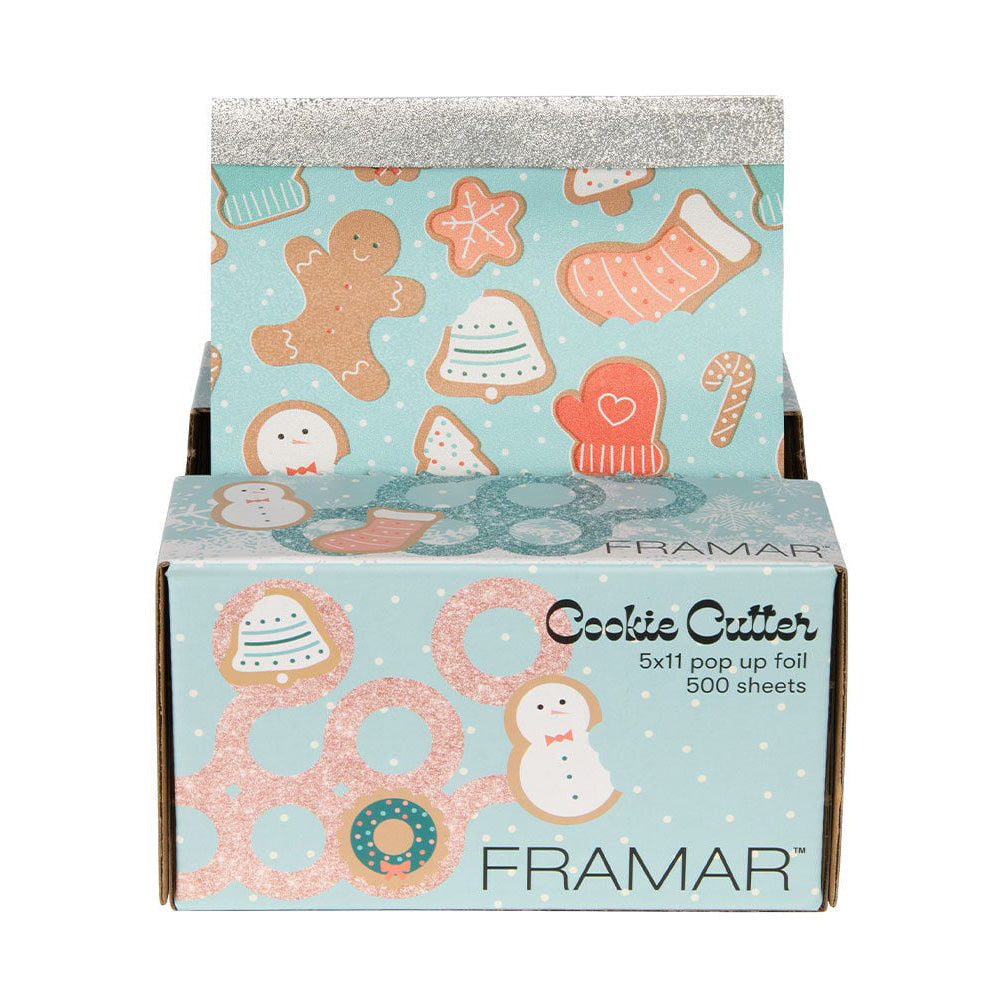 Die Framar Cookie Cutter Pop-Up-Folie bringt im Handumdrehen festliche Stimmung in Ihren Salon! Diese limitierte, geprägte Aluminiumfolie besticht durch ein fröhliches Weihnachtsmotiv mit Lebkuchenmännern, Schneemännern und winterlichen Farben. Perfekt, um Ihren Farbbehandlungen in der Weihnachtszeit einen Hauch von Festtagsstimmung zu verleihen.