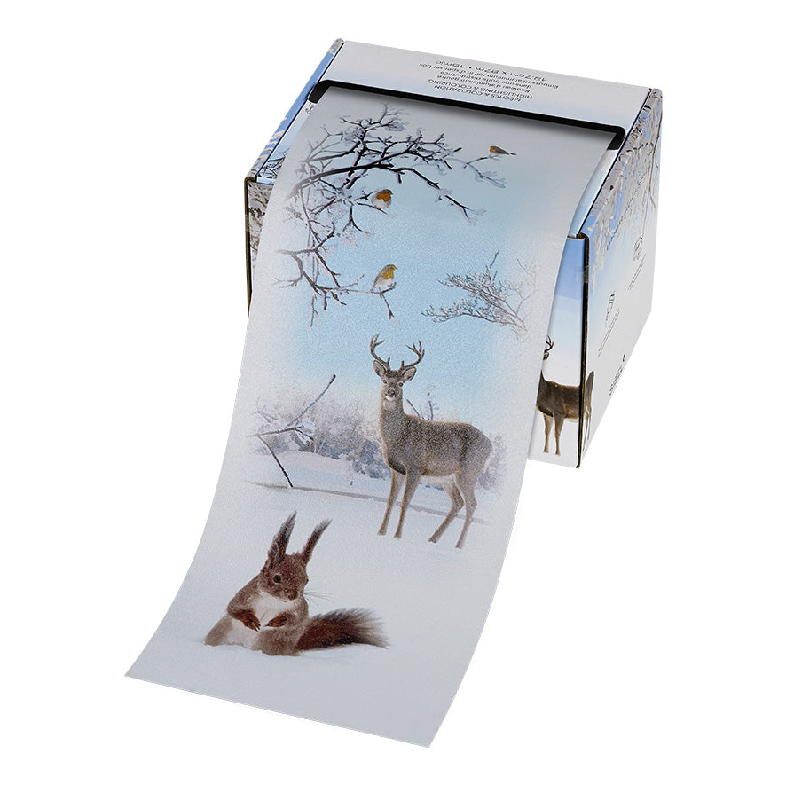 Die geprägte Aluminiumfolienrolle „Arctic“ von Sibel (12,7 cm × 97 m) vereint Funktionalität mit einem festlichen Design. Der winterliche Aufdruck mit Rentieren, Eichhörnchen und Singvögeln schafft im Handumdrehen eine gemütliche Atmosphäre in Ihrem Wohnzimmer. Die geprägte Folie lässt sich leicht abreißen, haftet sicher und bietet optimalen Schutz beim Färben und Markieren.