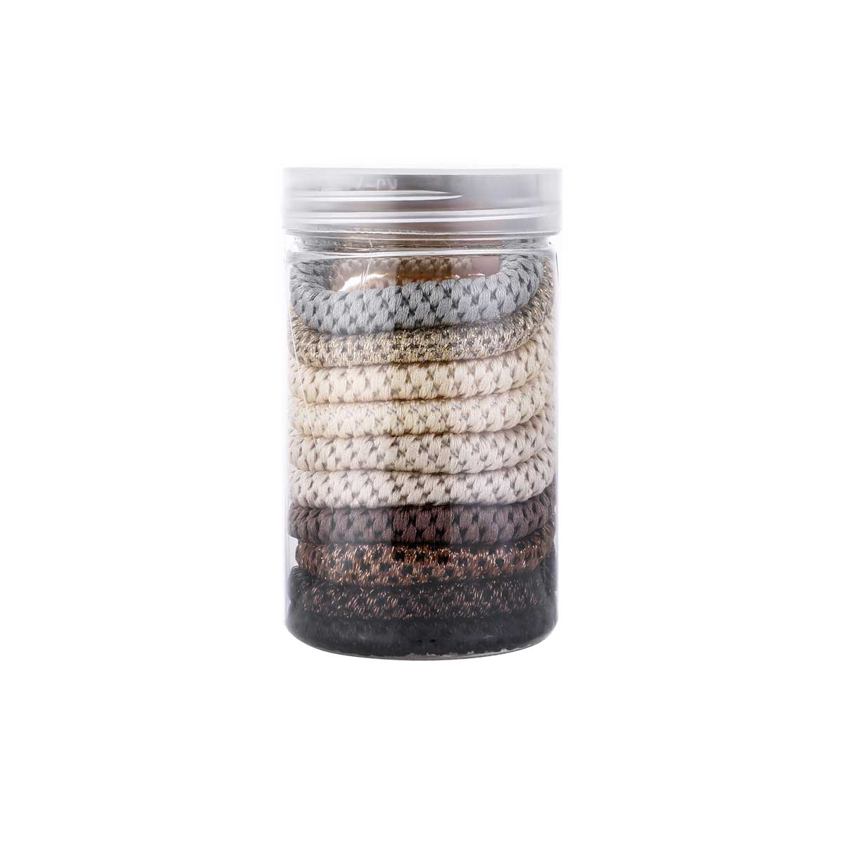 De Haarelastiekjes Rainbow 10st zijn ideaal voor wie houdt van natuurlijke en stijlvolle kleuren. Deze set bevat 10 elastiekjes in zachte tinten zoals beige, bruin, taupe en zwart, die perfect passen bij elke outfit en gelegenheid.